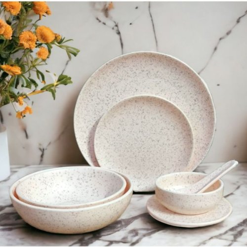 Ivory Dot Ceramic Soup Bowl with Plate